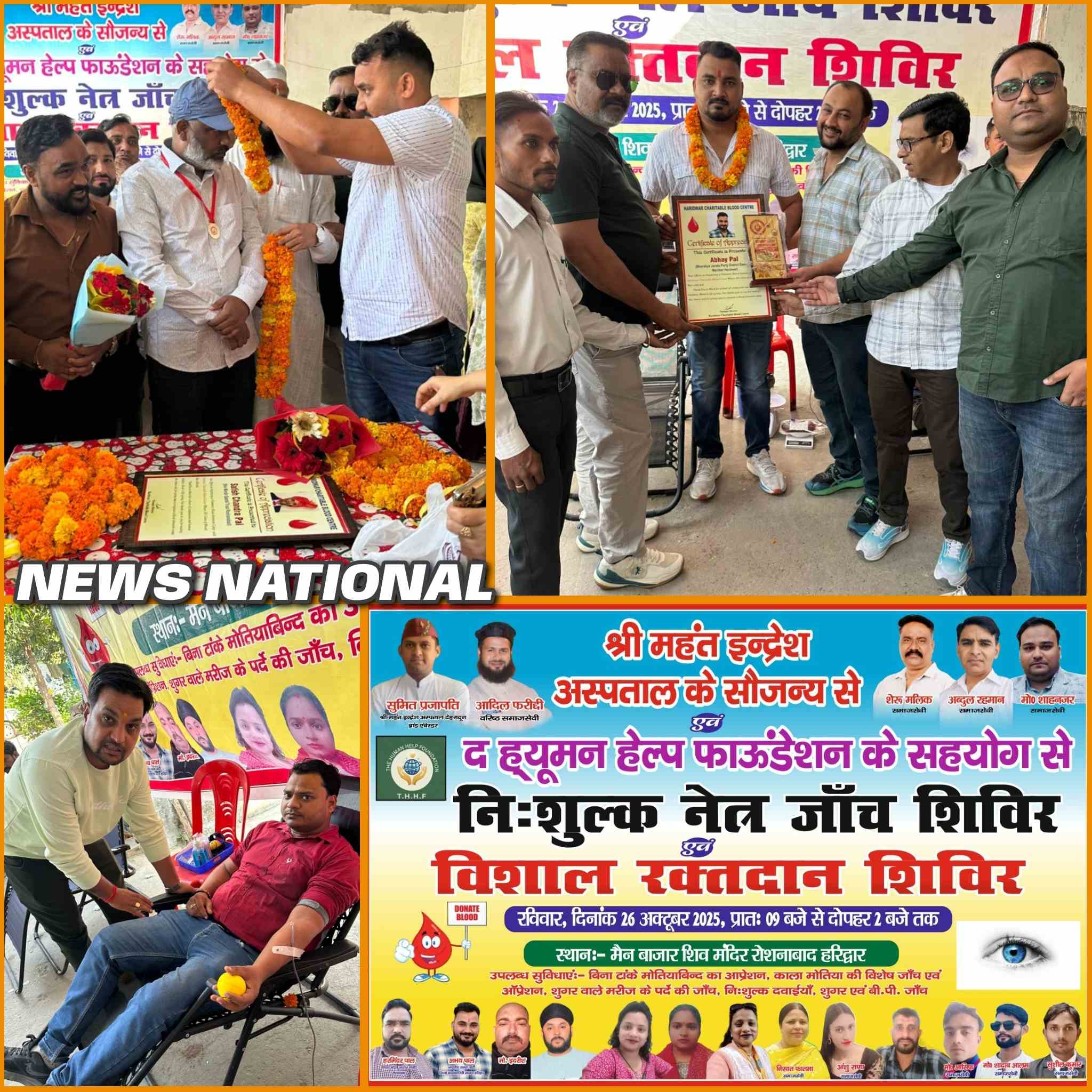 हरिद्वार। समाज सेवा की दिशा में सराहनीय कदम उठाते हुए श्री महंत इन्द्रेश अस्पताल के सौजन्य व द ह्युमन हेल्प फाउंडेशन के सहयोग से ग्राम विकास समिति रोशनाबाद की ओर से रविवार को नि:शुल्क नेत्र जांच एवं रक्तदान शिविर का आयोजन किया गया।