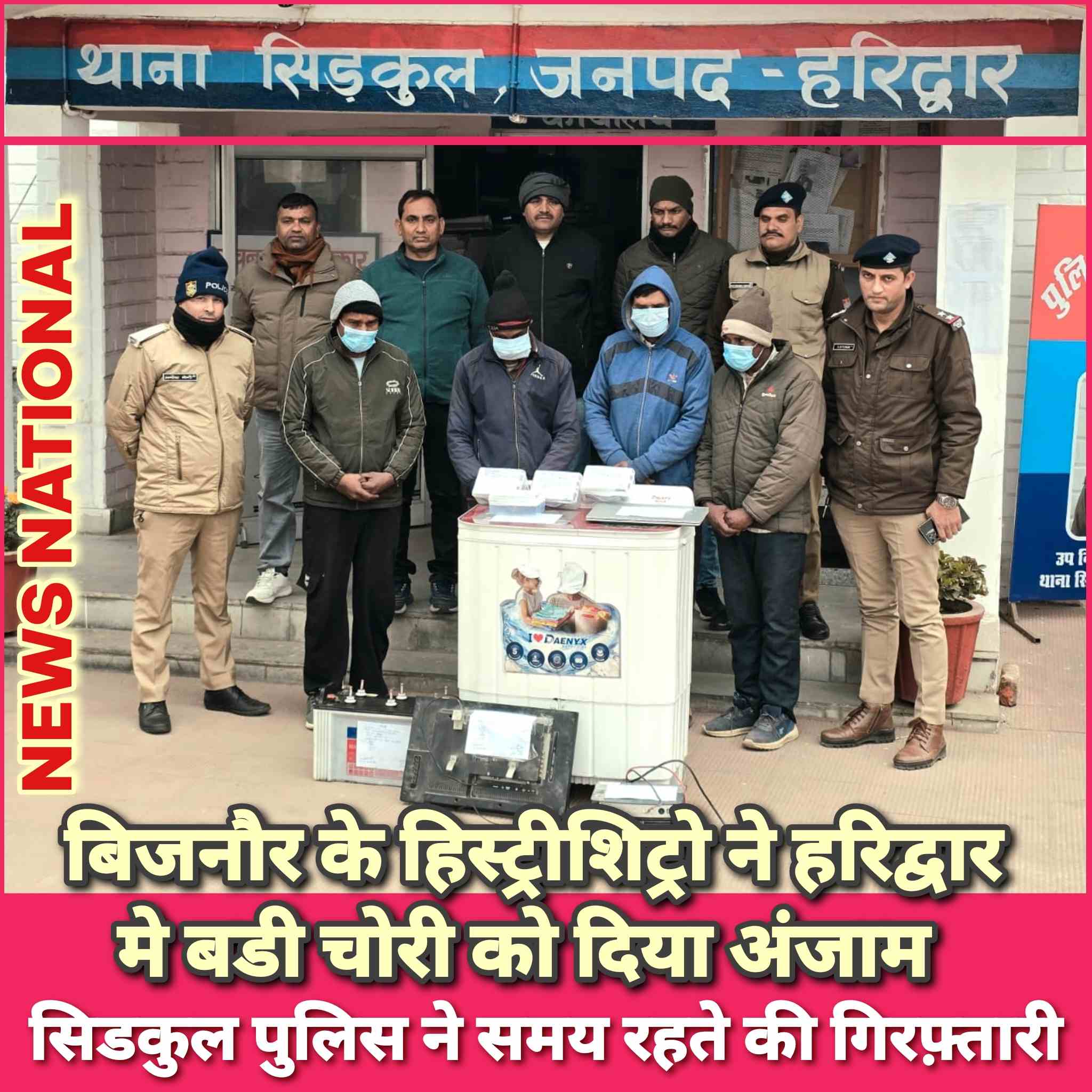 रात के घने कोहरे की आड़ में पुलिस कांस्टेबल के घर हुई बड़ी नकबजनी की वारदात का सिडकुल पुलिस ने सफल खुलासा करते हुए चार शातिर चोरों को गिरफ्तार किया है। गिरफ्तार आरोपियों में दो कुख्यात हिस्ट्रीशीटर भी शामिल हैं, जिन पर उत्तराखंड और उत्तर प्रदेश में कई आपराधिक मुकदमे दर्ज हैं। पुलिस ने आरोपियों के कब्जे से वाशिंग मशीन, लैपटॉप, एलईडी टीवी, इनवर्टर, बैटरी सहित ₹86 हजार नकद समेत करीब पौने दो लाख रुपये का चोरी का सामान बरामद किया है।
