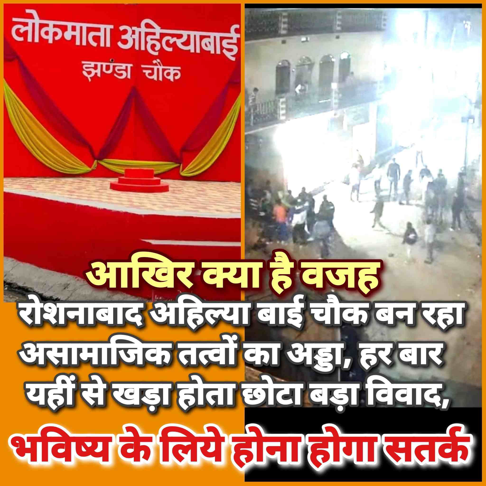 रोशनाबाद क्षेत्र में शांति व्यवस्था को बिगाड़ने की एक और कोशिश को समय रहते नाकाम कर दिया गया। पुलिस की सक्रियता और सतर्क निगरानी के चलते हालात फिलहाल नियंत्रण में हैं, लेकिन जिस तरह से रोज़ाना अहिल्याबाई चौक पर असामाजिक तत्वों की मौजूदगी बढ़ती जा रही है, उसने आम नागरिकों के साथ-साथ प्रशासन की चिंता भी बढ़ा दी है। स्थानीय लोगों का कहना है कि आखिर क्यों हर बार विवादों की शुरुआत इसी चौक से होती है,