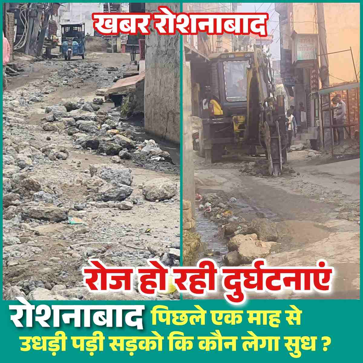 रोशनाबाद / एक माह से ऊपर का समय गुजर चूका है रोशनाबाद के अंदर कि मुख्य सडके जल निगम द्वारा पाईप लाइन डालने के लिये उधेड़ तो दी गई लेकिन अभी तक न तो पाईप लाइन ही बिछी है और न ही अभी इसके कोई आसार नजर आ रहे है,